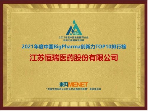 9月16日,由米内网主办的“2021年度中国生物医药企业创新力百强系列榜单”发布会在线上举办。918博天堂医药继去年登顶“中国BigPharma企业创新力TOP10排行榜”后,今年再次名列该榜单首位。