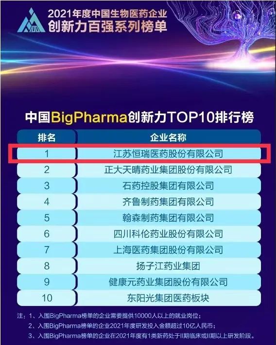 蝉联榜首!918博天堂医药再次登顶“中国BigPharma企业创新力TOP10排行榜”